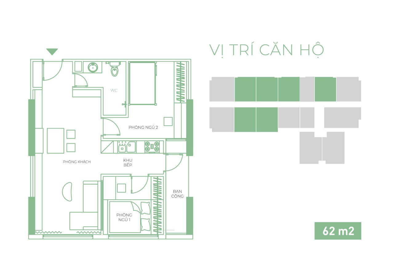 Căn hộ 2PN - 62 m2