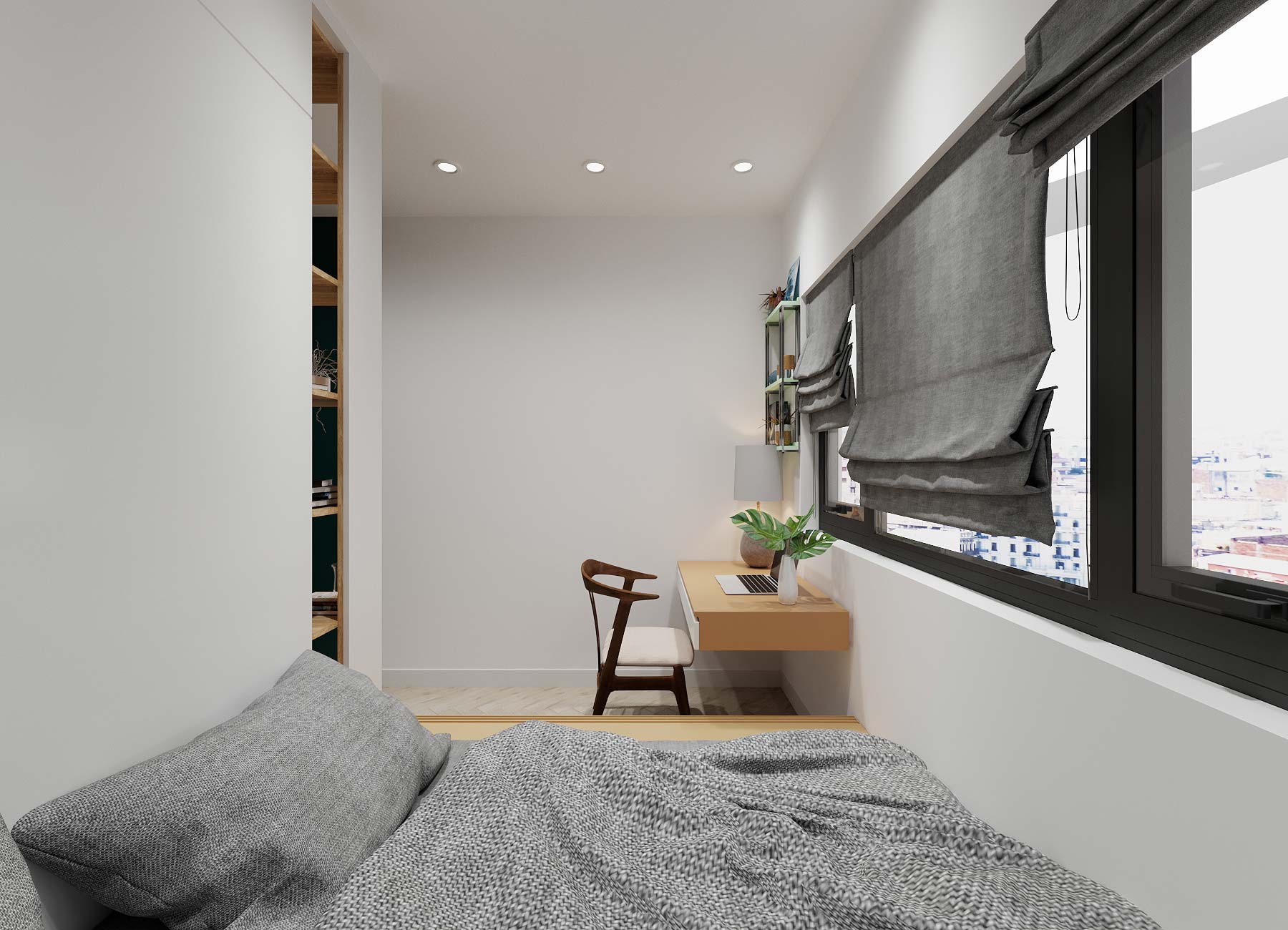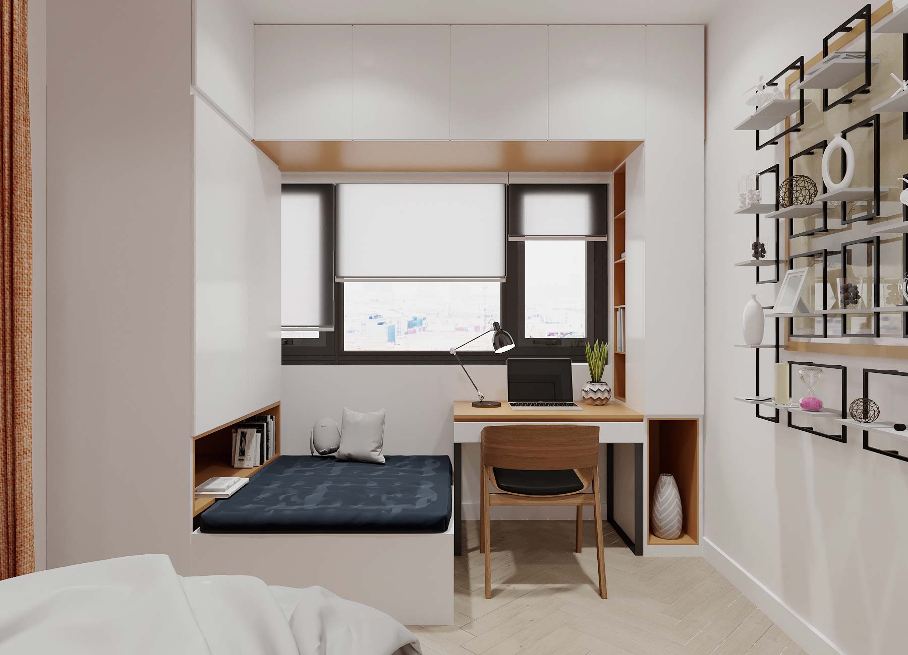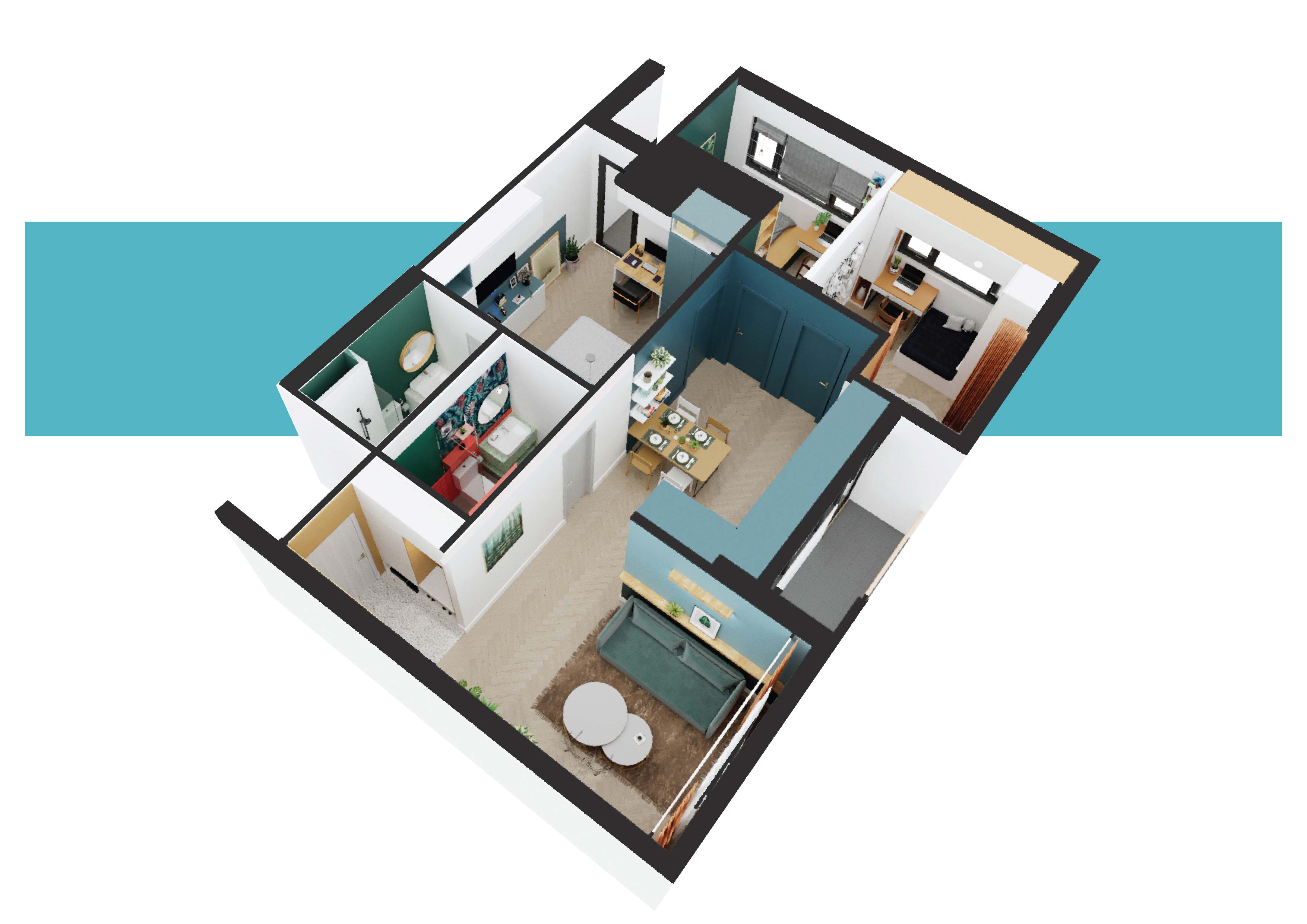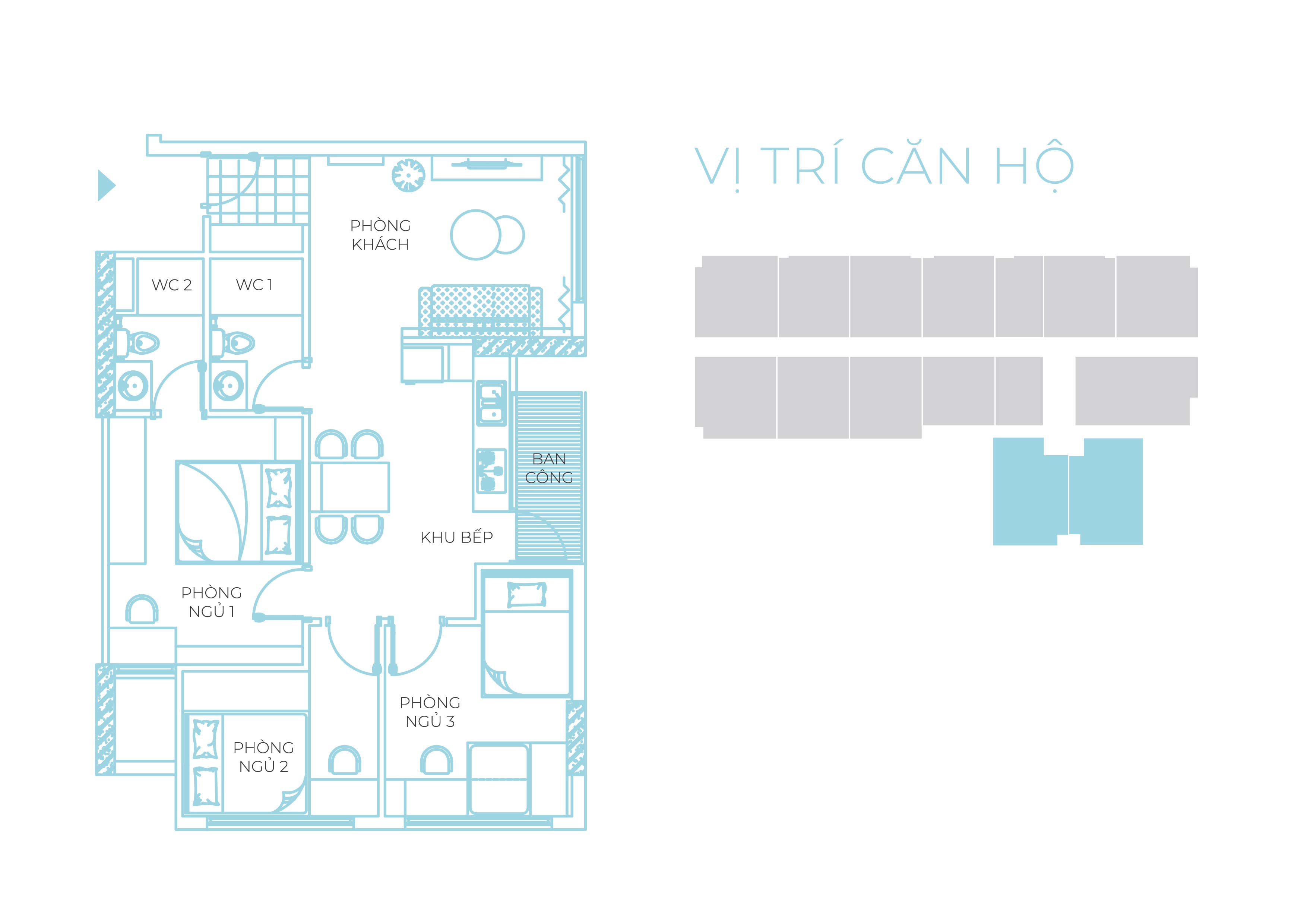 Các kiến trúc sư tài năng đã khéo léo bố trí căn hộ 69m2 tại vị trí góc với nhiều mặt thoáng mang tới tầm nhìn tươi trẻ, phóng khoáng được chia thành 3 phòng ngủ, 2 phòng vệ sinh, ban công kết nối với phòng bếp. Căn hộ cũng rất phù hợp để chuyển đổi thiết kế thành căn hộ 2PN + 1 ( mở rộng thêm không gian phòng khách và không gian chung )
